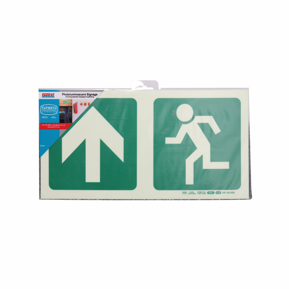 Photoluminescent 190MM Safety Sign - E10-Arrow Up+Running Man