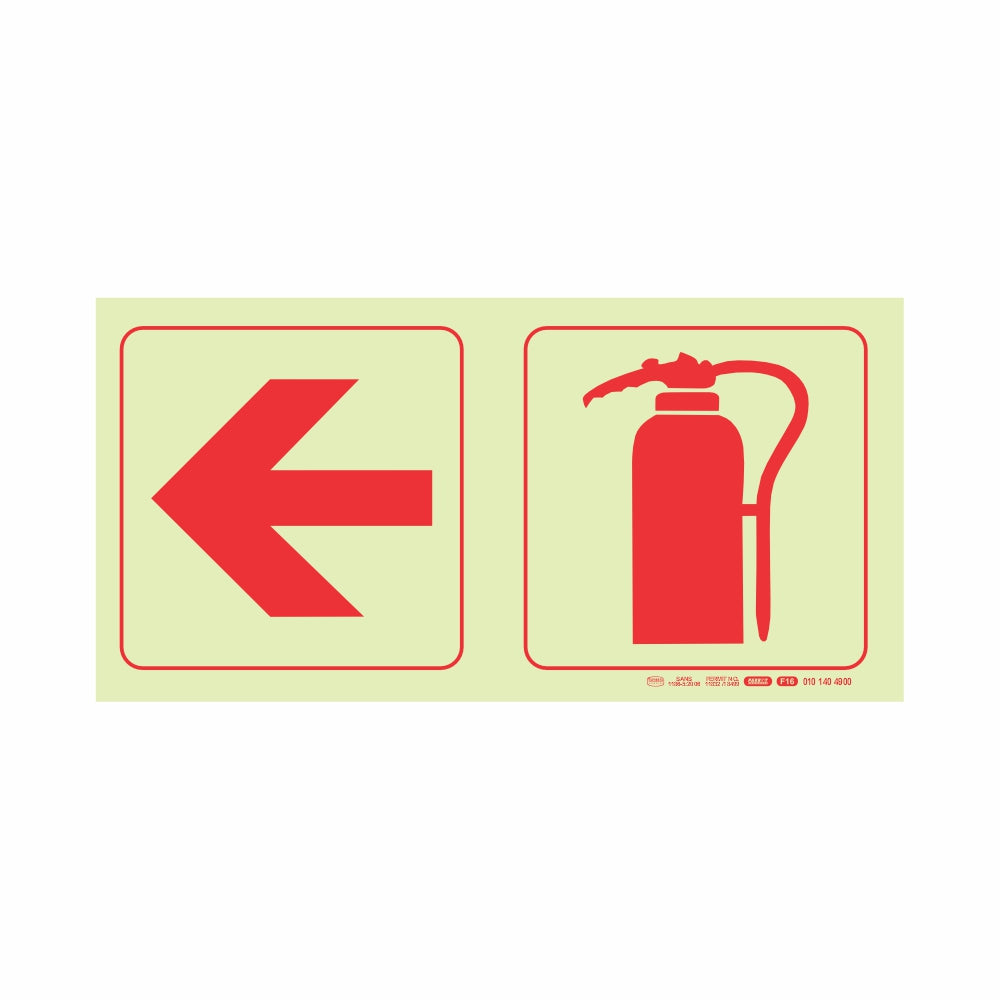 PHOTOLUMINESCENT 190MM SAFETY SIGN - F16-ARROW LEFT+FIRE EXTINGUISHER