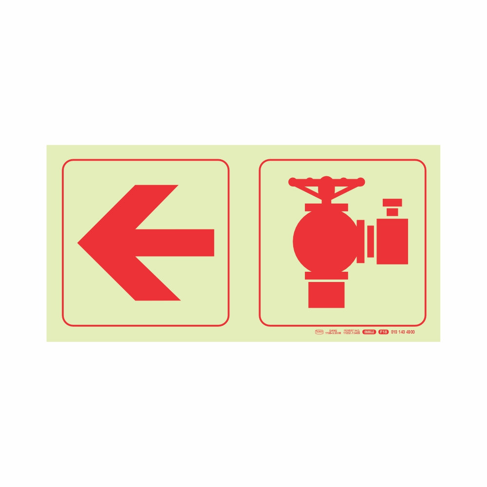 PHOTOLUMINESCENT 190MM SAFETY SIGN - F18-ARROW LEFT+FIRE HYDRANT
