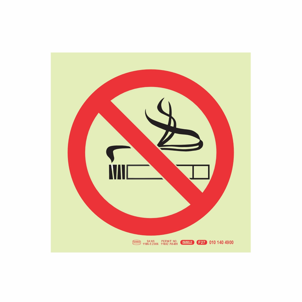 PHOTOLUMINESCENT 190MM SAFETY SIGN - F27-NO SMOKING